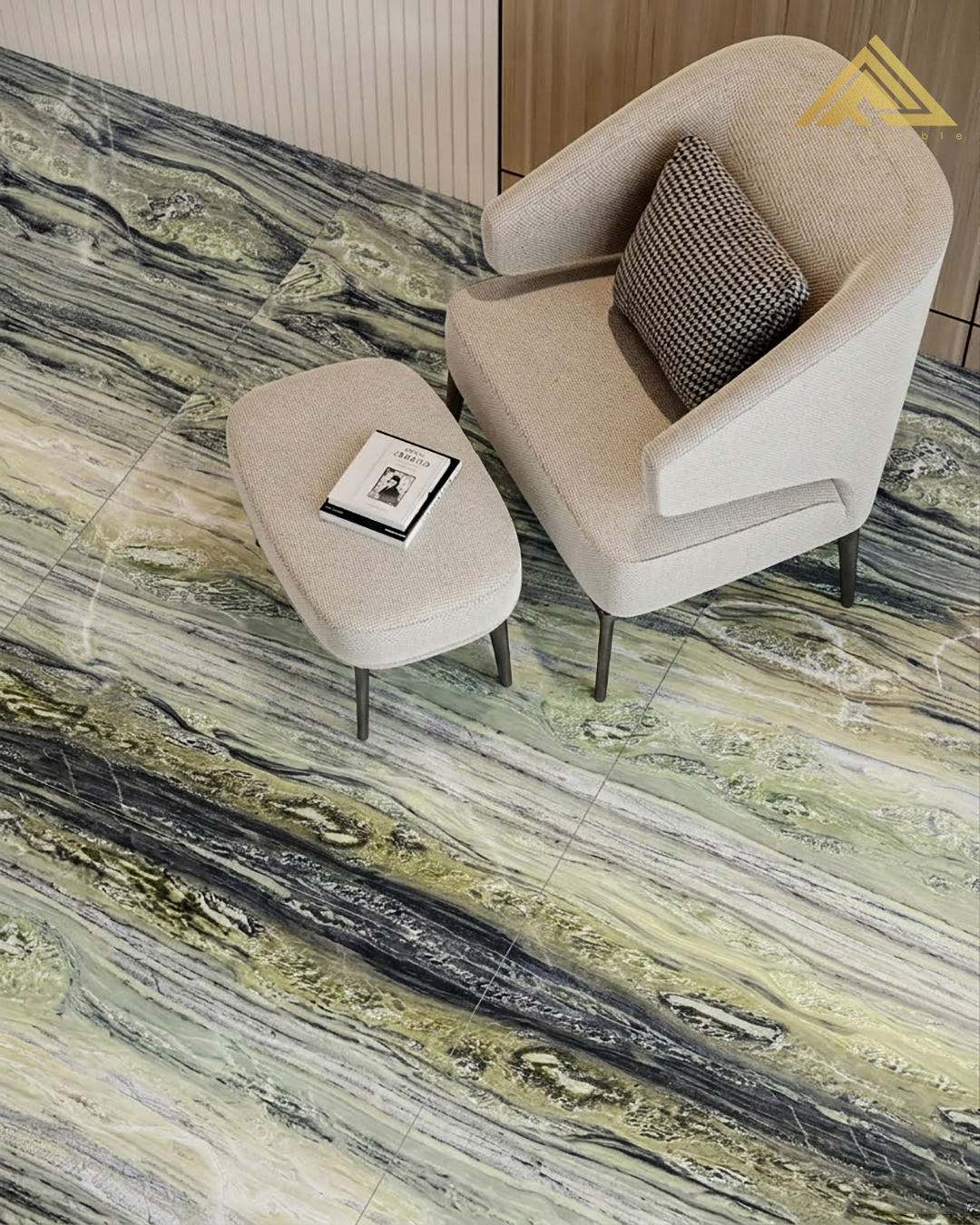 رخام توين لايت مير الطبيعي – فخامة الزمرد وإشراقة الذهب
