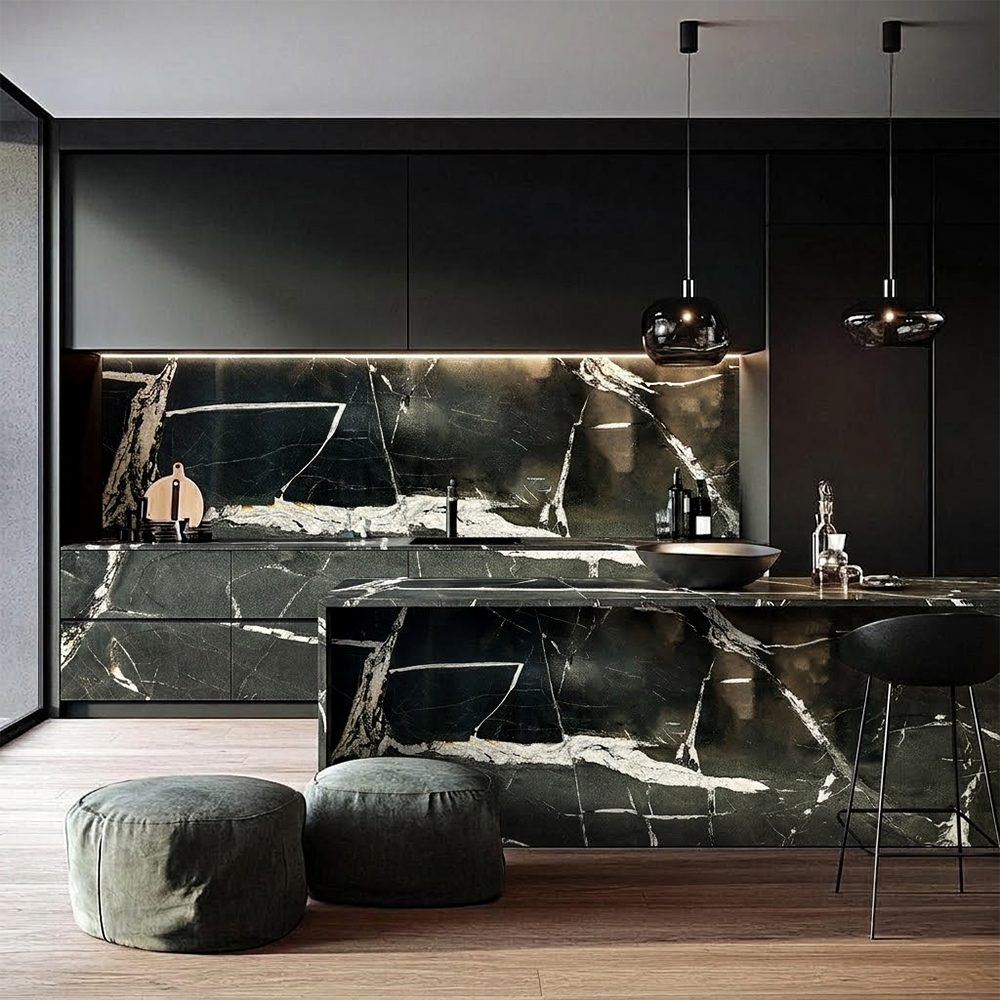 خيار رائع ومثالي لتنفيذ الكونترات الفاخرة، المغاسل الرخامية، والجدران المميزة التي تتطلب طابعاً دراماتيكياً.